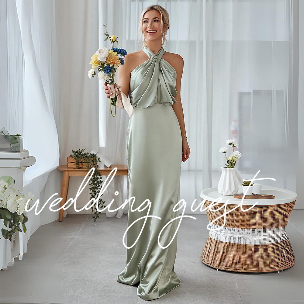 Modecrush Light Green A-Line Halter Organza Midi Prom Dress