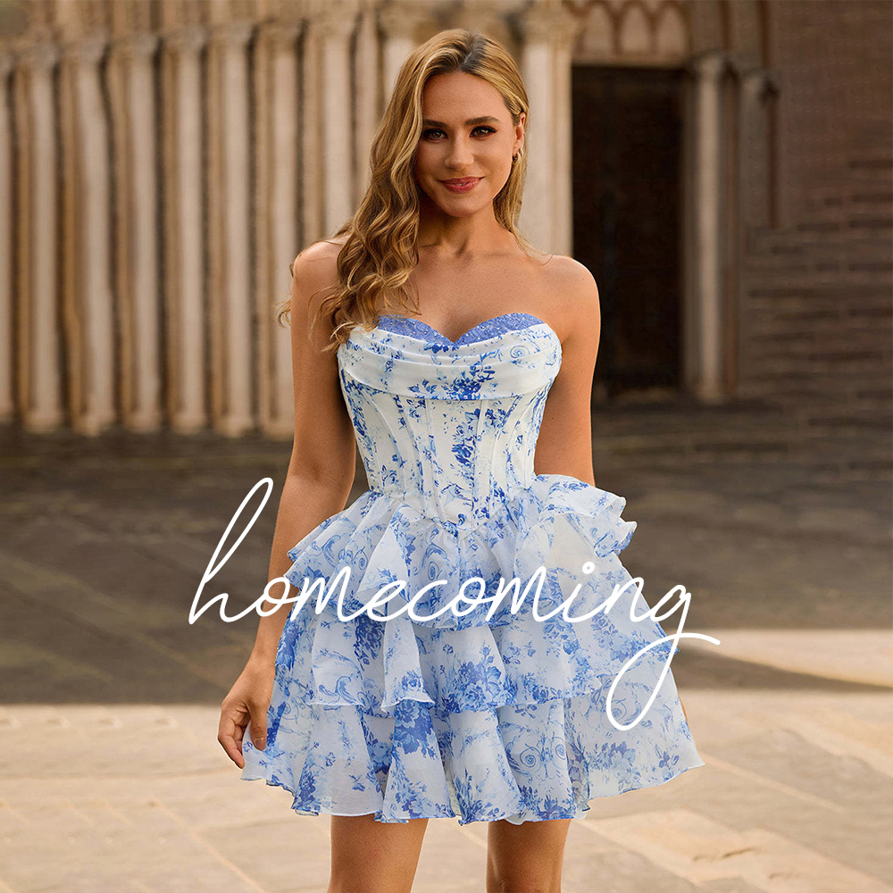 Grey Blue A Line Spaghetti Straps Short Homecoming Dress