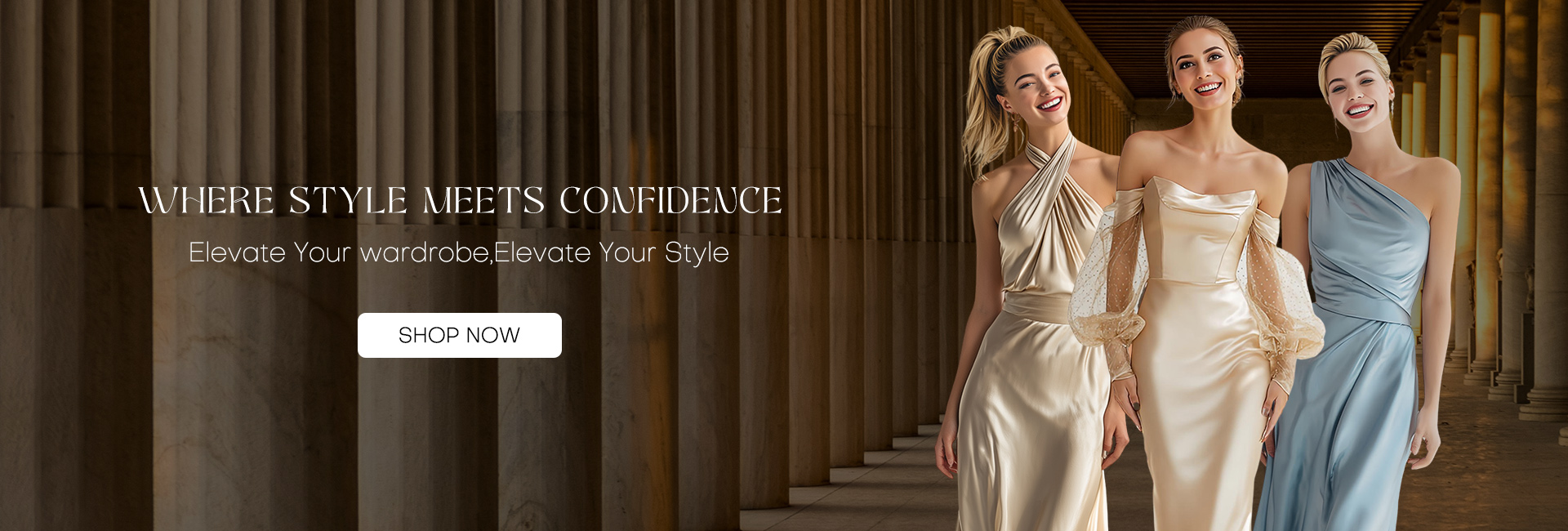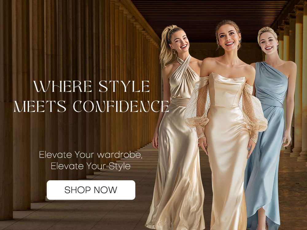 Modecrush Sheath Champagne Square Neck Long Wedding Guest Dress with Slit